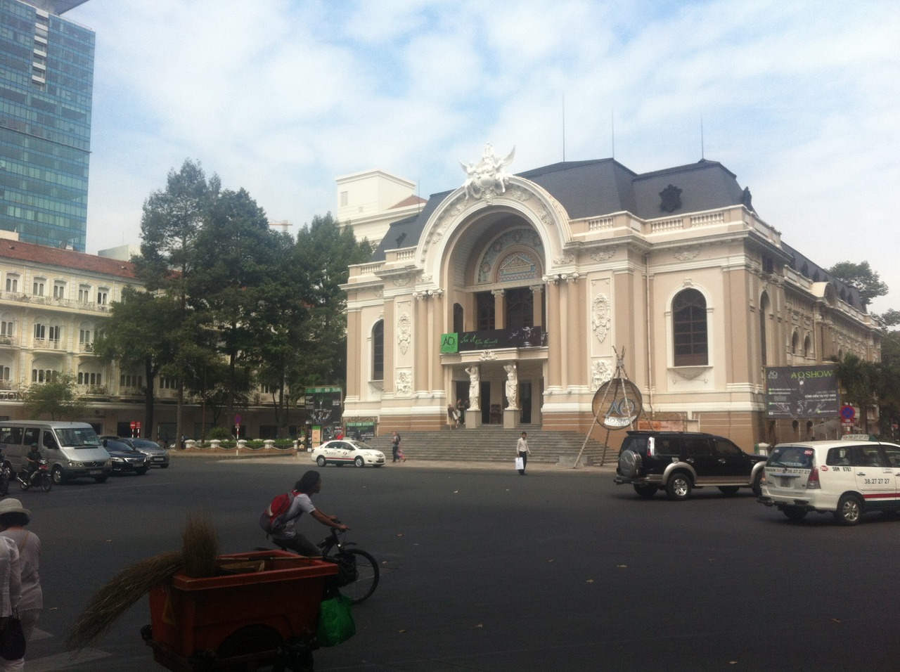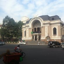 ホーチミンで街歩きをしてまず目に入るのがこの、優雅な西洋式の建物です。大きな建物は街の中心に鎮座していてここから幾つもの道が広がっています。建物の前は階段になっているので階段を上がって広がる街の光景を見ると、まるで西洋の国来たような気分になりました。建物の裏側にはベトナムの濃い緑がいっぱいのカフェもあるのでそちらでひと休みしても気持ちがよさそうでした。
