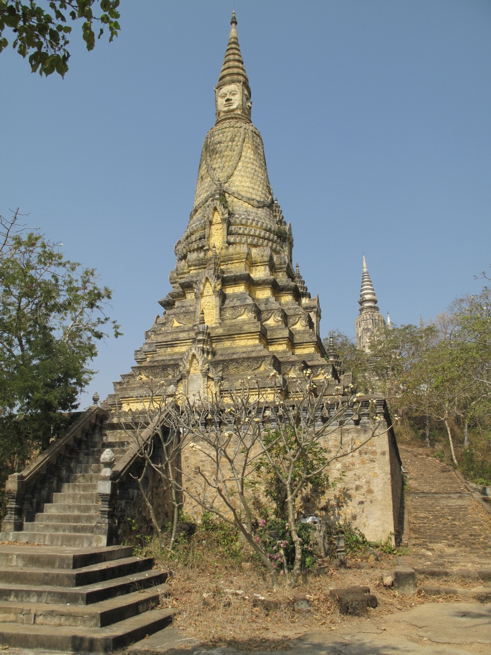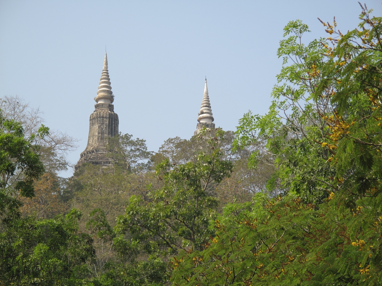ウドンには、歴代の王が建立した三基の仏塔が山の頂にそびえたっています。