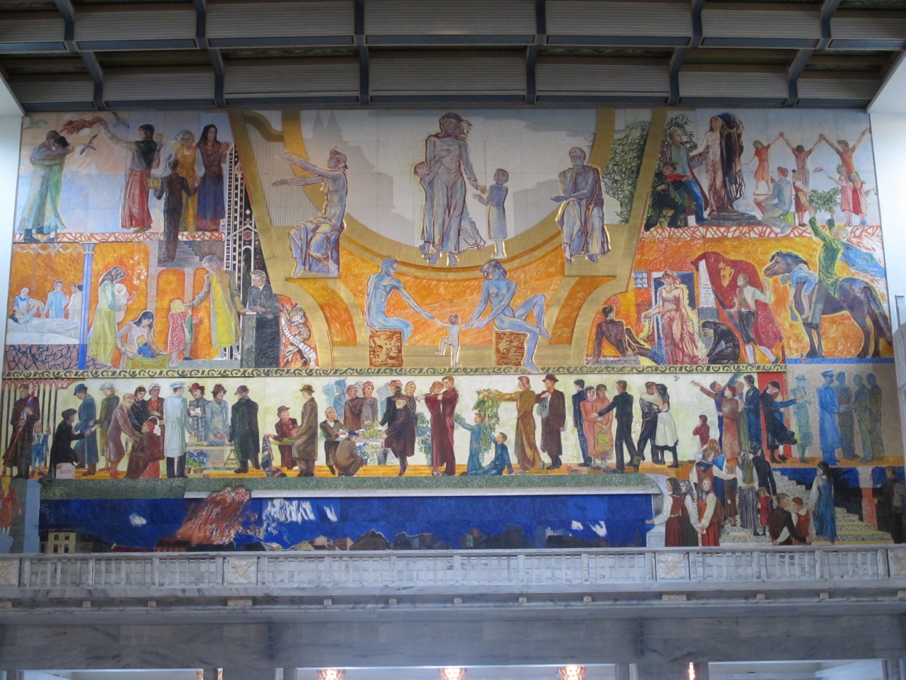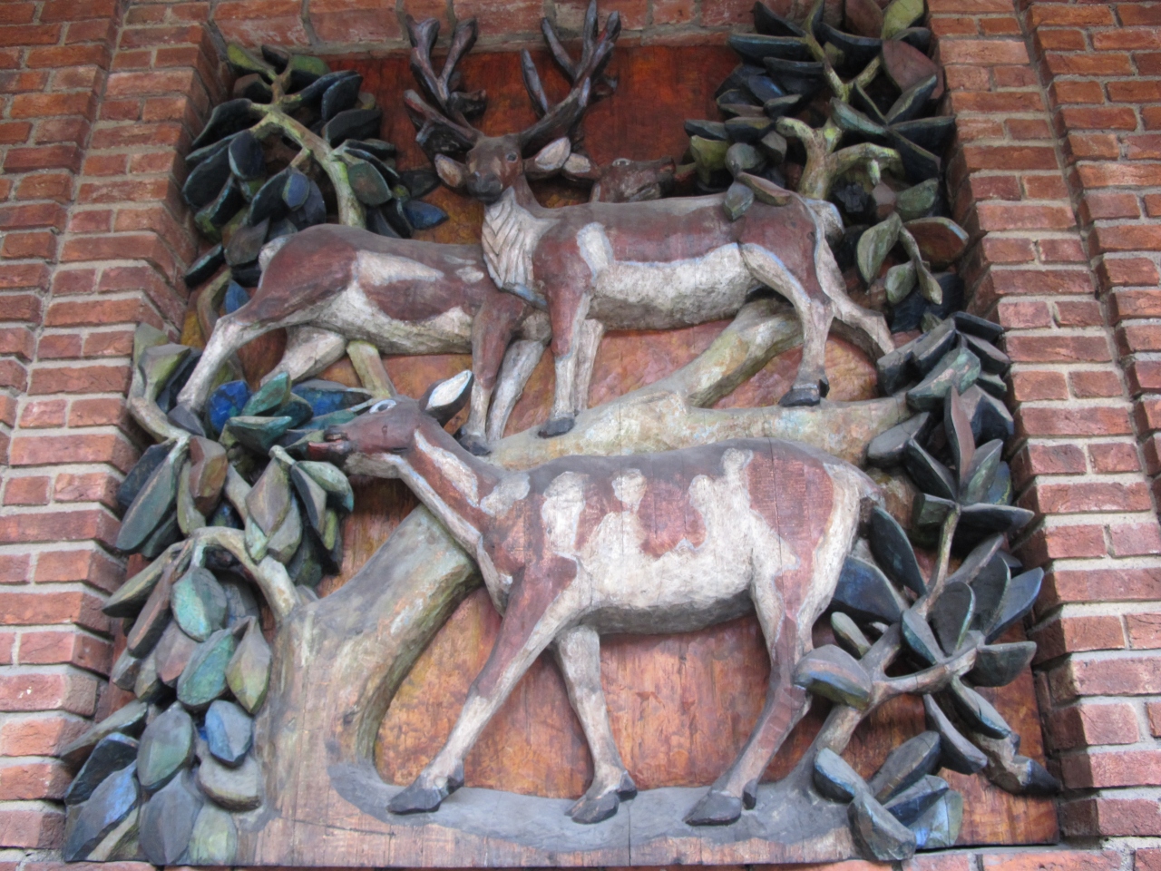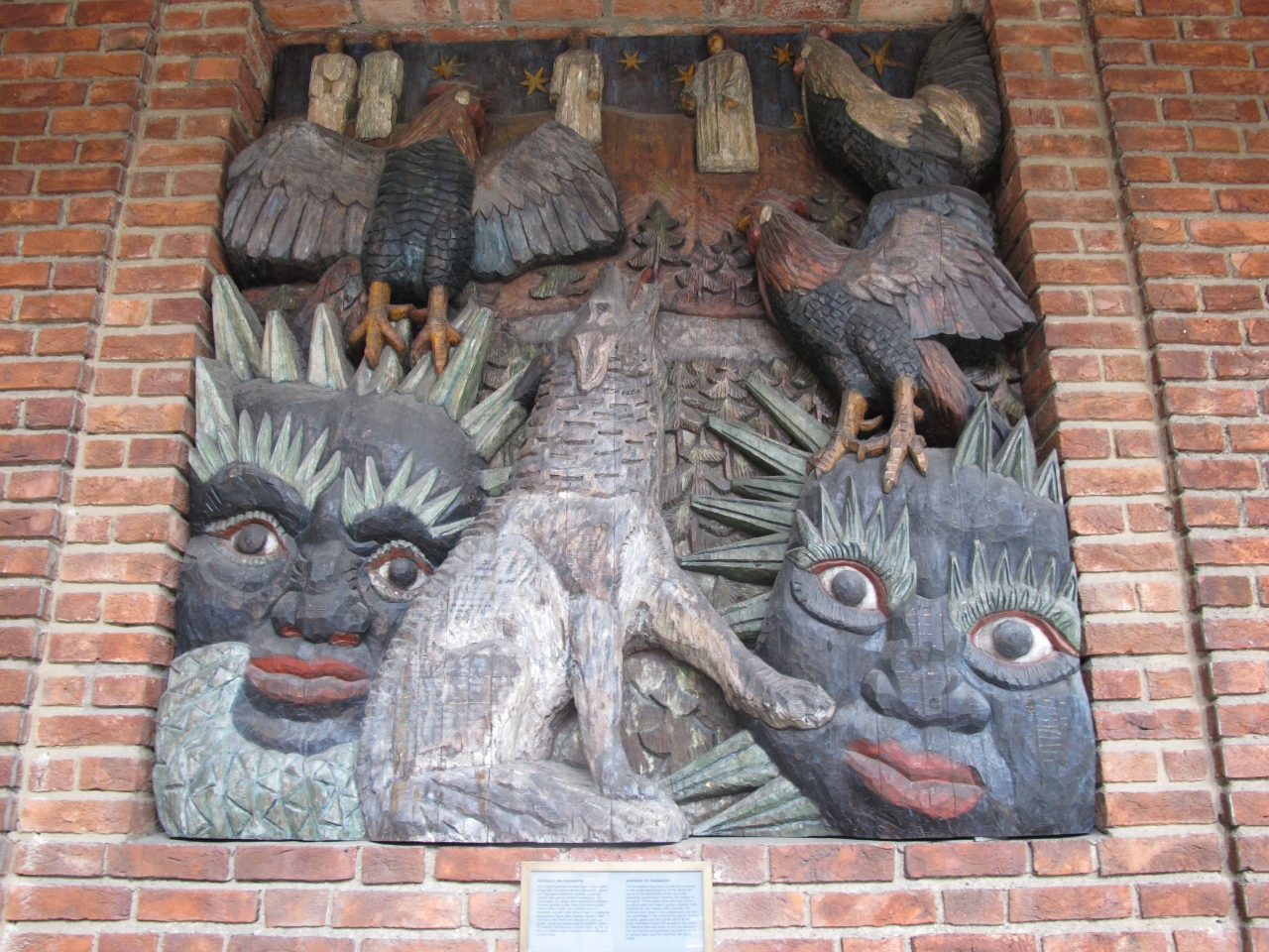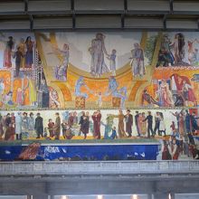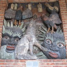 外に北欧神話のレリーフが飾ってあります。北欧旅行前に北欧神話の本を読んで行ったので、興味深かったです。