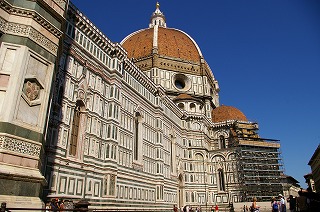 フィレンツェのドゥオモの大きさや迫力を目の当たりにできます。広場内(敷地内)にはサン・ジョバンニ洗礼堂やジョットの鐘楼もあります。観光の中心地でもあるので、混雑していましたが、人の入れ替えも早いようで、ベンチは少し待てば空きました。