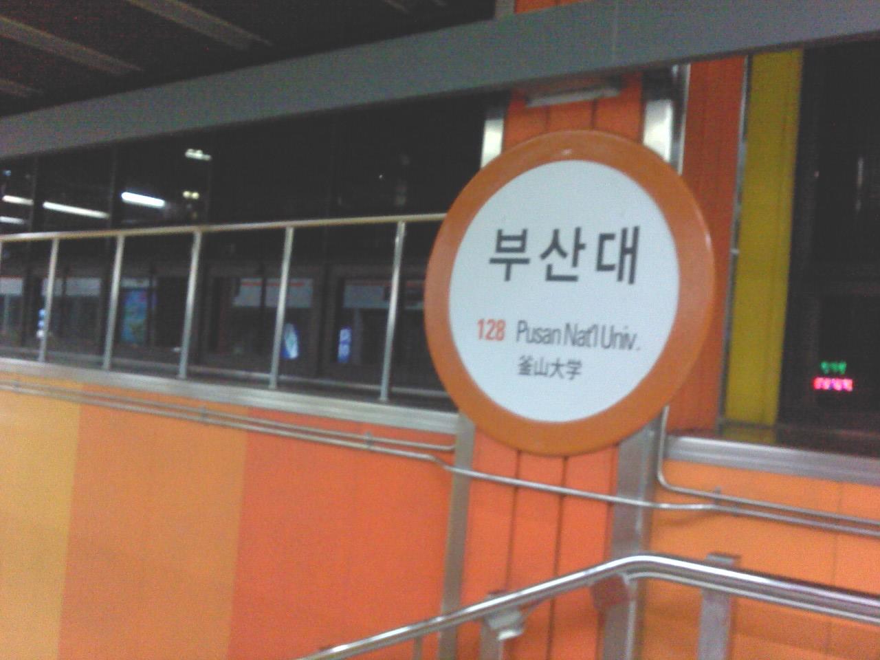 名前の通り、釜山大学に近い駅です。駅は地下鉄ですが、高架の上にあり、地上階は、売店などが入っている駅です。