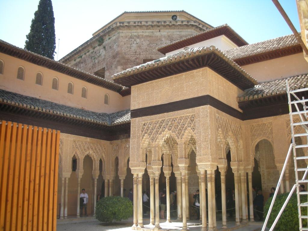 アルハンブラ宮殿のナスル朝宮殿ではあまりにも有名なライオンの中庭です。しかし、私たちが訪れた際は肝心のライオンが脱走(修復中で不在)。歴史遺産を訪れる際は、このような状況があり得ますので注意です。ただ、ライオンは居なくとも美しい中庭でした。