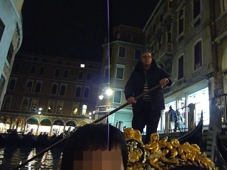 乗客は傾きが気になっているのに、ゴンドリエーレは全く気にしていない。