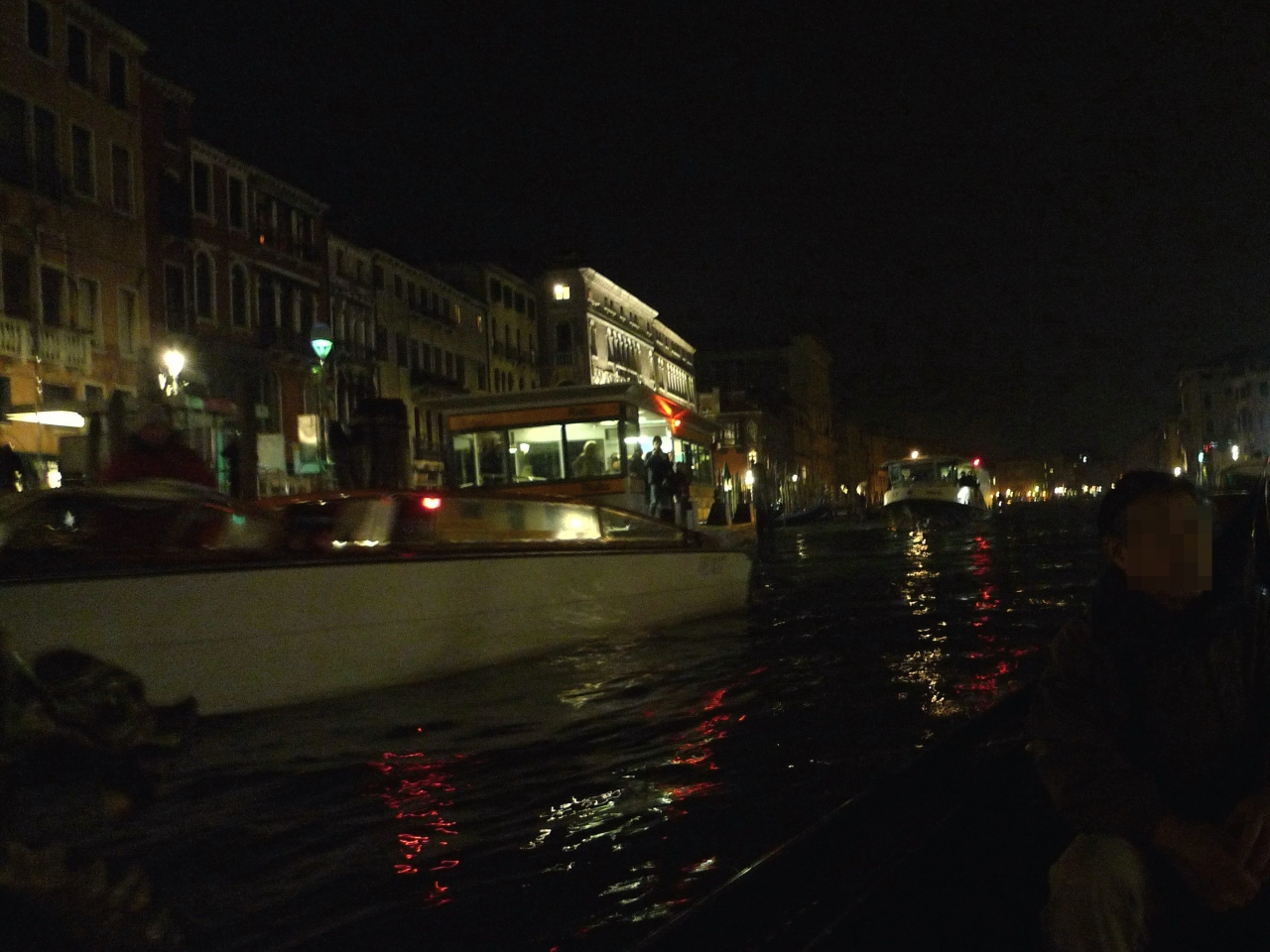 大運河に出ると水上バスやら水上タクシーの大きな波が来て結構揺れる。