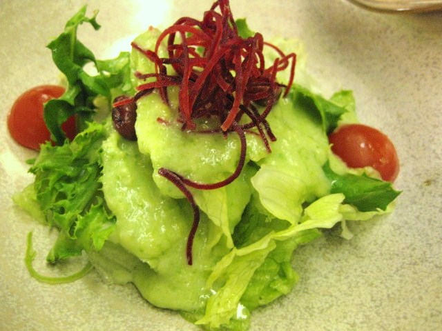 店舗の近くにあるロイヤルホテルのロビーに迎えに来てくれた。店内のテーブルが小さい為かサラダから1品ずつ順番に出てきた。味付けが甘すぎず辛すぎず、とにかく見た目が美しい。日本人好みの料理でした。