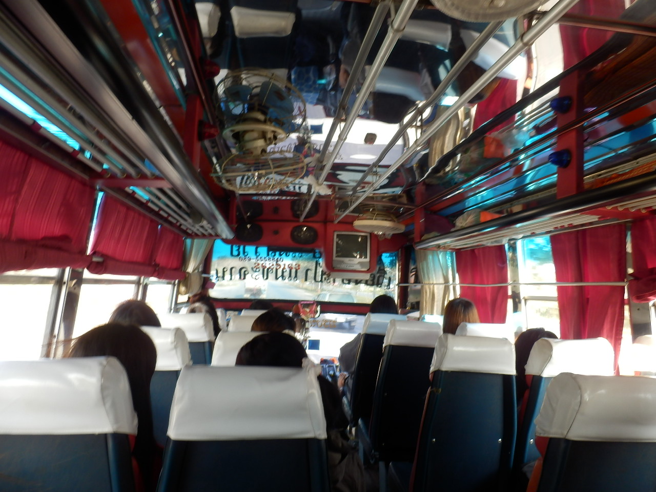 チェンライからチェンマイやメーサーイ行きのバスは本数が多く出ているので、予約をせず、時刻表を確認せずとも、バスターミナルにふらりを行けば乗ることが出来ます。チェンマイ行きは時刻表通りに発車していましたが、メーサーイ行きなどは時刻表があるのかどうか不明で、満員に近くなったら発車している感じでした。 運賃はバスの発車後、車掌さんが行き先を確認しながら回収しに来ます。