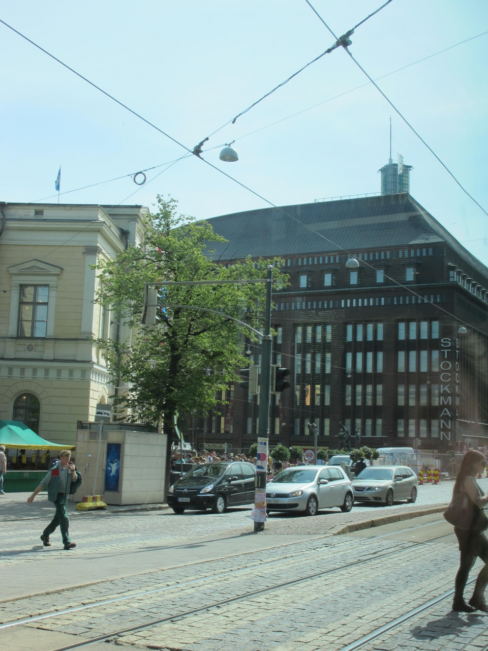地下一階に雑貨屋があり、ムーミンのキシリトールなど、お土産に適したものを買えます。デパートの前に小さな出店があり、そこでイチゴが買えます。また、デパートの前の通りに、ギターを弾きながら歌う少女や、素晴らしい演奏を聞かせるバンドなどがいました。