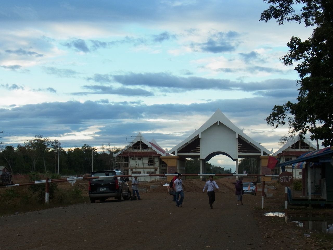 シェムリアップ発のVIPバスで国境まで来て降ろされた。バスの乗務員が皆のパスポートとビザ代(日本人は必要なし)少しの手数料(皆が払った)を持って入国手続きを代行してくれて、歩いて遮断機のようなバーを通過、その後バンに乗ってシーパンドンへ向かいました。ラオス側には立派な建物が建設中だったので今後に期待したい。