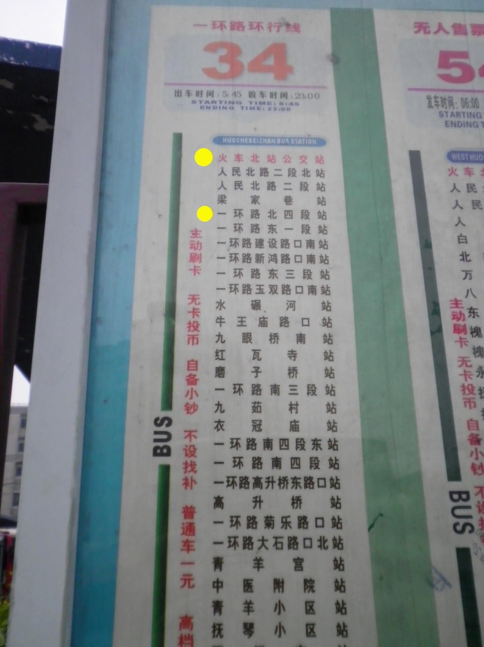 老沈青年旅舎前まで行く34番バスは西側のバス停。