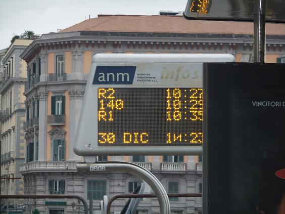 ヌオーヴォ城の観光のため、ガリバルディ広場からR2のバスに乗りました。行きは混雑も無くスムーズに移動できましたが、帰りは終点のガリバルディ広場ではなく、一つ手前の停留所で降りれば良かったと思いました。広場内は一般車両も入り乱れ、少しの距離にもかかわらず、停留所への到着に10分くらいかかりました。