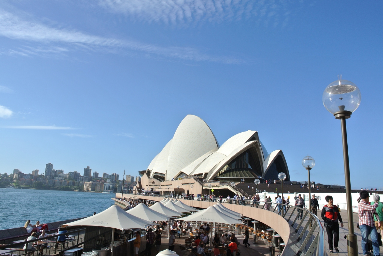 世界遺産でもあるオペラハウスに訪れました。最寄り駅はサンキュラー・キー。プラットホームからオペラハウスの眺めも良いです。テレビやネットでは散々見てきましたが、やはり実物はお見事です。写真は近くより、ハーバーブリッジと一緒の方が見映えが良さそう。中の売店でお土産を買うことが出来ます。