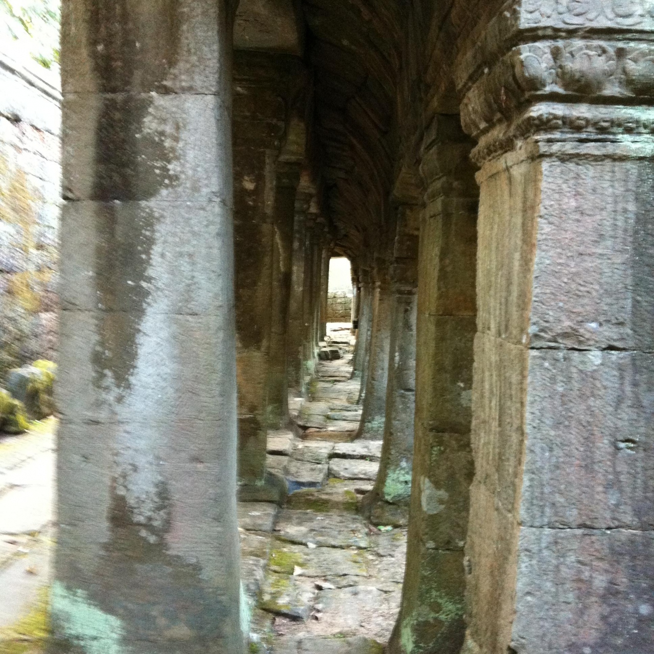 東門から踊り子のテラスを抜けて進むと、中の回廊は右にも左にも前にも進め、まるで迷路に迷いこんだような気分になります。ひっそりとした寺院ですが、レリーフも美しく、お気に入りの場所を探してゆっくりと鑑賞したくなる遺跡でした。