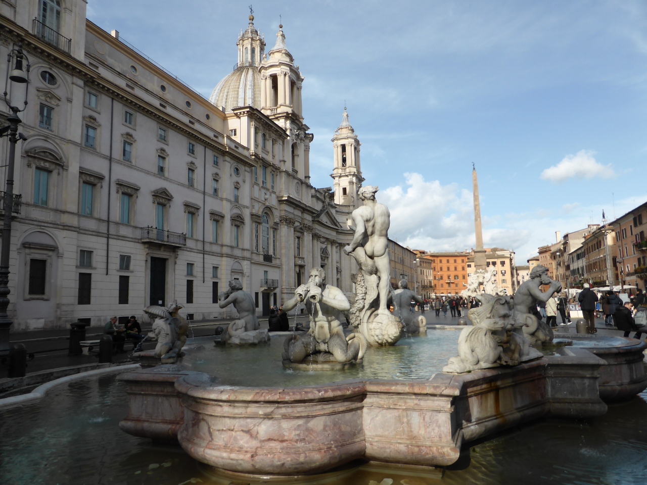 ムーア人の噴水、ネプチューンの噴水、四大河の噴水と3つの噴水が並んでいます。