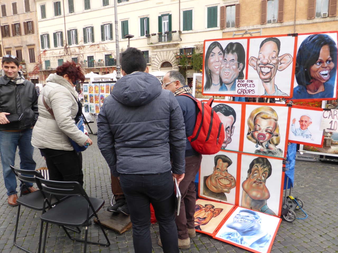 広場では、画家、似顔絵描き、大道芸人、楽器演奏とこれぞローマといった独特な雰囲気がありました。