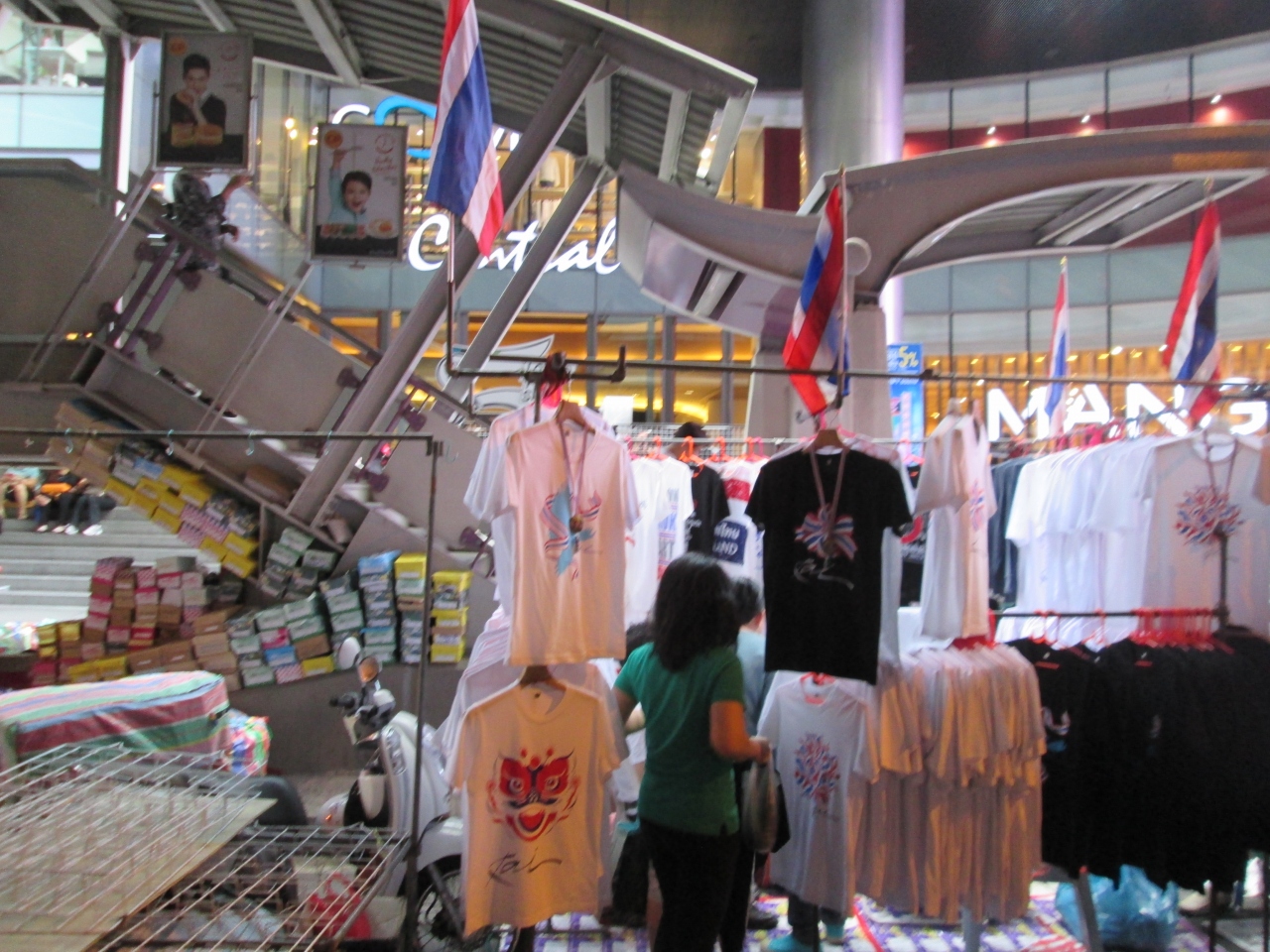 1/13以降、反政府のデモ隊が周辺の道路を封鎖しており、店の外には露店、屋台が出ており、歩行者天国状態になっています。店自体は営業していますが、入口では空港のようなボディーチェックを実施しているため、鞄を持参している場合、警備員の検査が厳しいので要注意です。