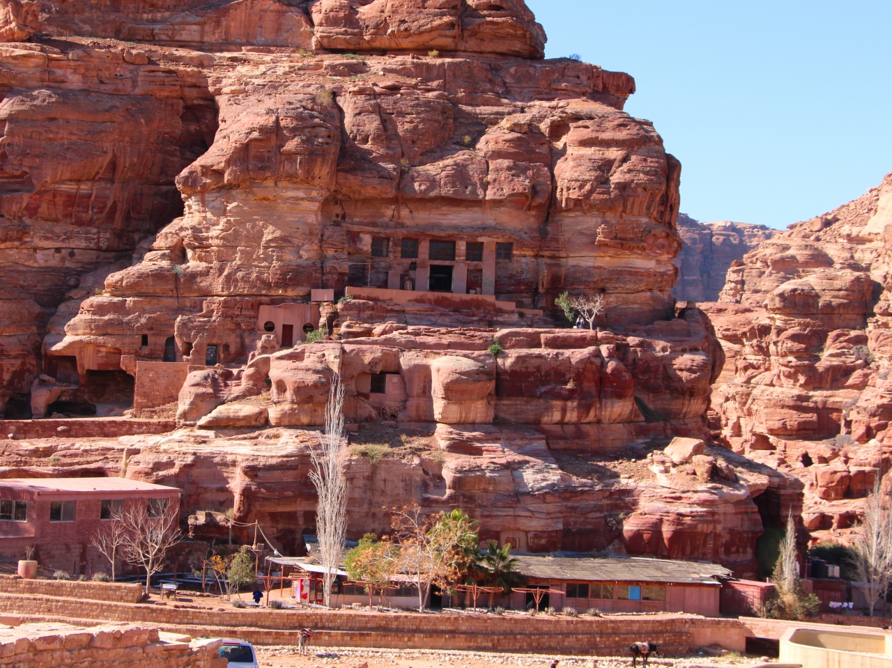 一見するとベドウィン住居のように見えるが、よく見ると岩の切り口はきれいな四角。そして、窓にはガラスが嵌まっている。最初、岩山にガラスが嵌まっているのを見た時は岩山の岩窟住居を現代風にリフォームした裕福なベドウィンがいるのかと思ってしまった。