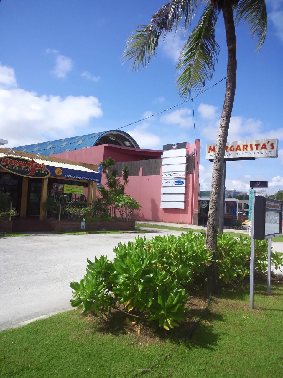 ぱっと見、おしゃれなピンクのいかにも南の国な外観。しかし、営業している店舗がとにかく少ない。