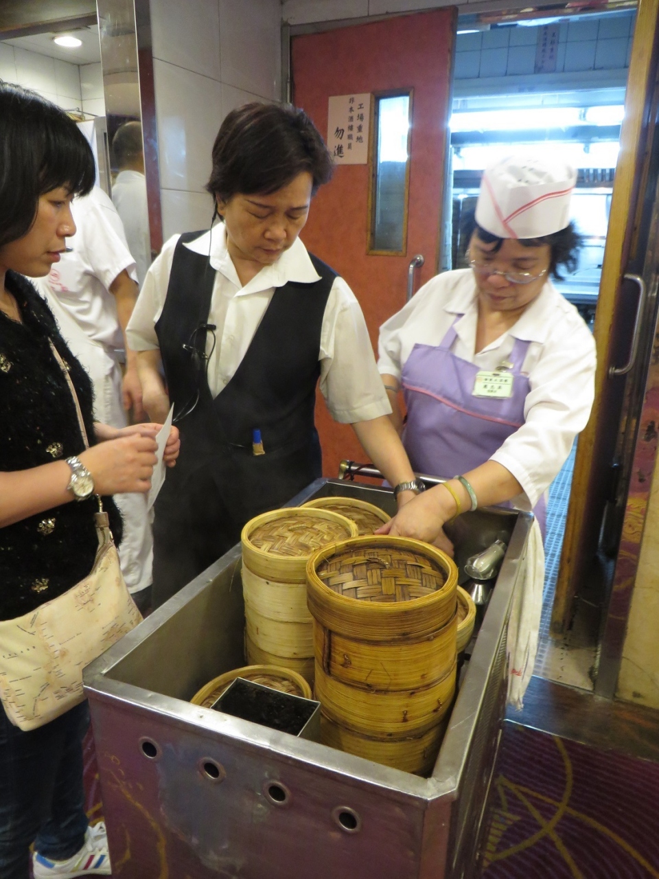 席に着いたら、先ずはお茶の注文である。店員が聞きに来るので、「ボーレィ茶」とか「ウーロン茶」などと注文すればよい。香港の人が好むお茶は「ボーレィ茶」である。あとはお茶を飲みながら、周りを回って来るワゴンから欲しいものを取ればよい。何時間いても文句は言われないので、新聞を読んだり、おしゃべりをしたりして、のんびり過ごすことができる。