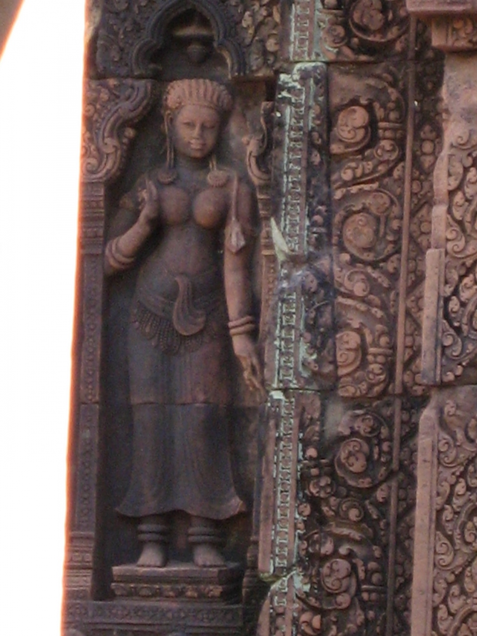 壁画などの浮き彫りが非常に細かく素晴らしいです。また、ここで一番有名な東洋のモナリザ(デパター象)は近くまで行く事が出来ず、遺跡の回廊が狭い為なかなかゆっくり見ることが出来ませんでした。双眼鏡を持って行く事をお勧めします。