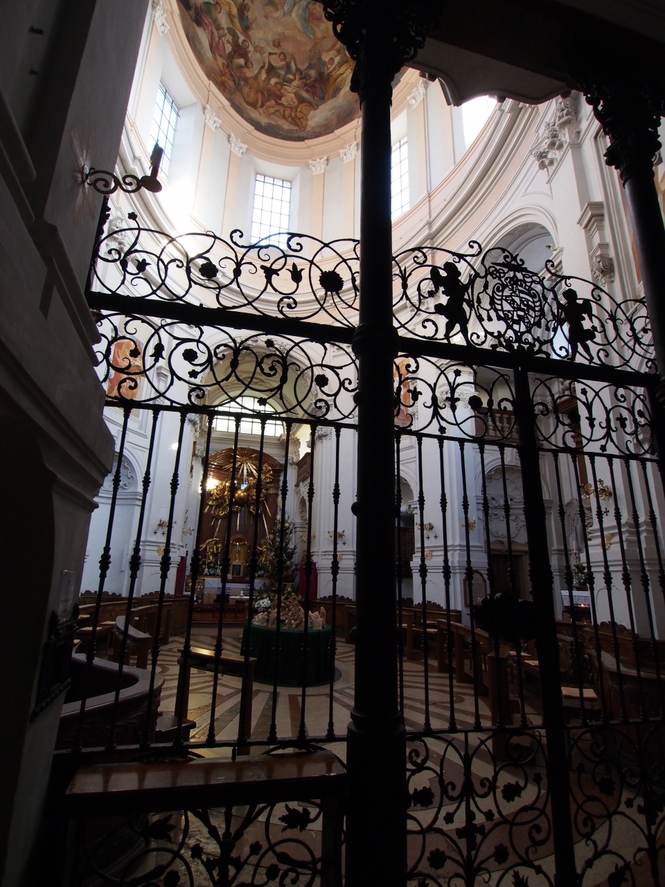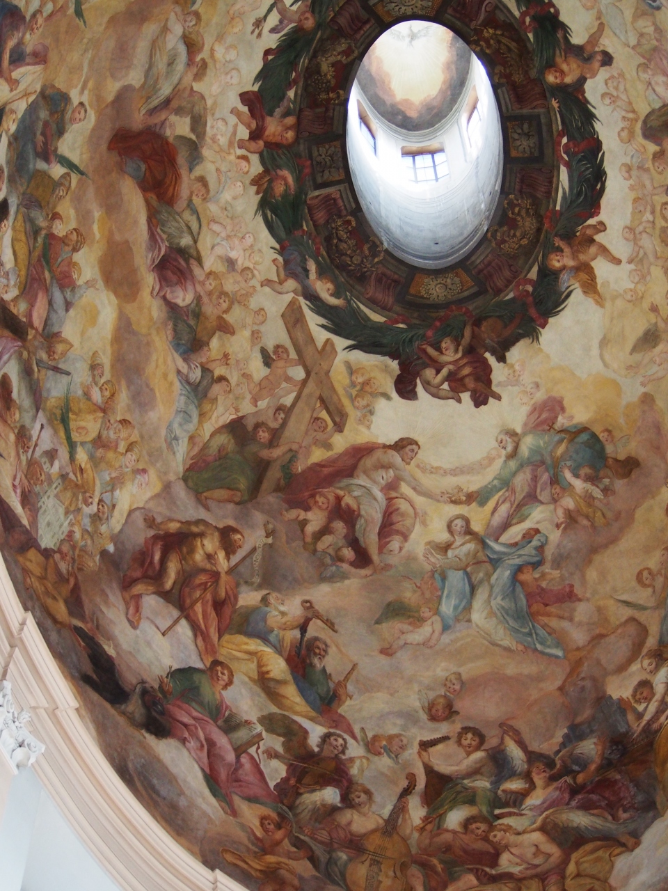 建物はウィーンのカールス教会を建てたフィッシャー・フォン・エアラッハ設計。天井のフレスコ画はマリア戴冠はヨハン・ミヒャエル・ロットマイヤー作。
