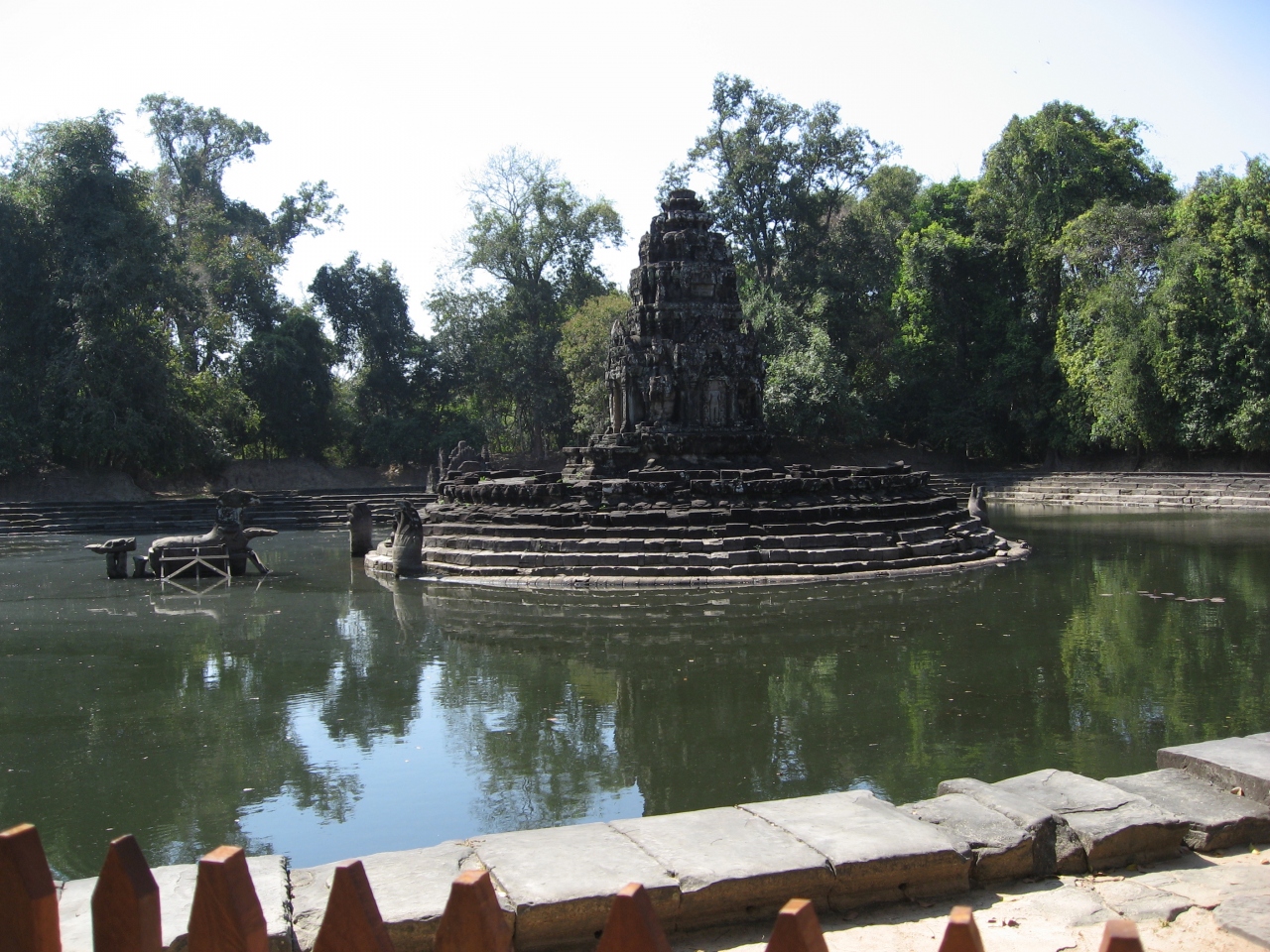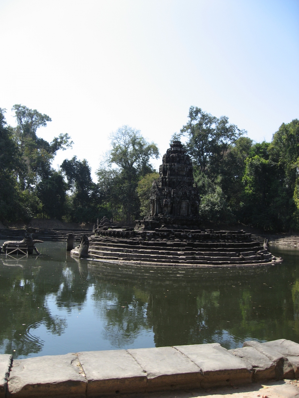 ニャック・ポアンとは絡み合うヘビの意味がります。中央池には祠堂があり二匹のヘビが絡みあっています。鎌首は東に向いておりヘビの先には聖なる馬ヴィハーラがいます、水の中にあって見えませんが馬の後ろ脚には病に悩む人々がすがりついています。人もあまりいなくホッっと一息つける遺跡です。