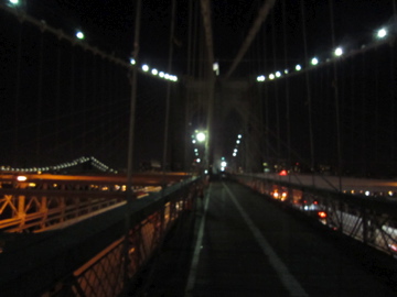 ブルックリンの綺麗な夜景に憧れて、「そうだ、ブルックリン橋」を渡ろう!と意気込んでみたのですが、実際には、地下鉄駅から橋までの距離が案外あって、結構大変でした。てくてく歩くのですが、結構同じ事を考える人って多いみたいです。橋まではゆるやかな坂を登る感じですね。で!いざ渡ったのですが、夜景はそれほどでしたが、記念にはなります。