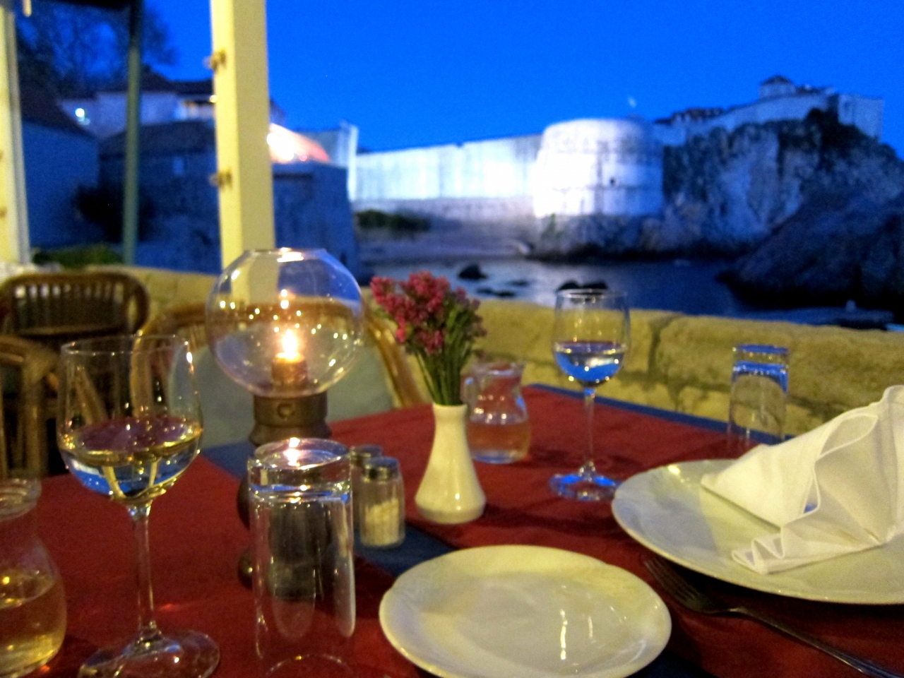 テラス席から世界遺産を眺め、おいしいワインと料理を味わいました