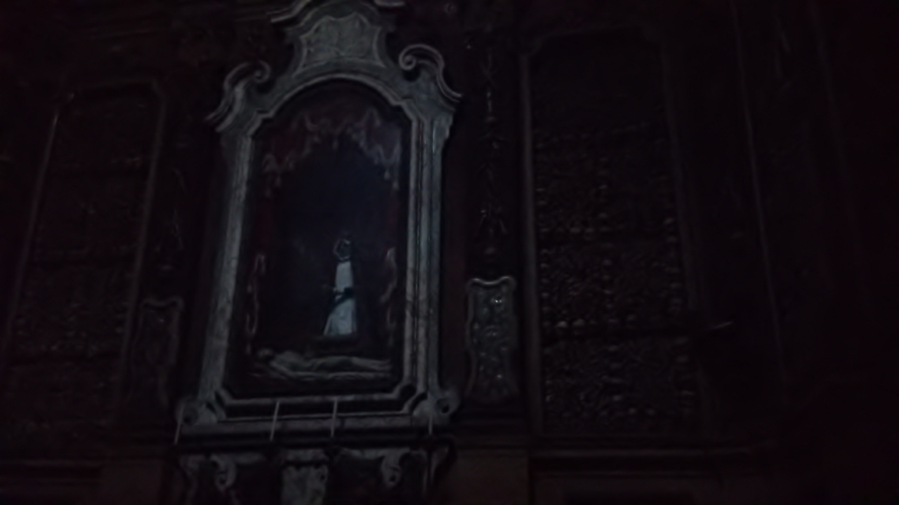 入ってすぐには普通の礼拝堂があるのですが、左手通路を入っていくと真っ暗な礼拝堂につながっています。