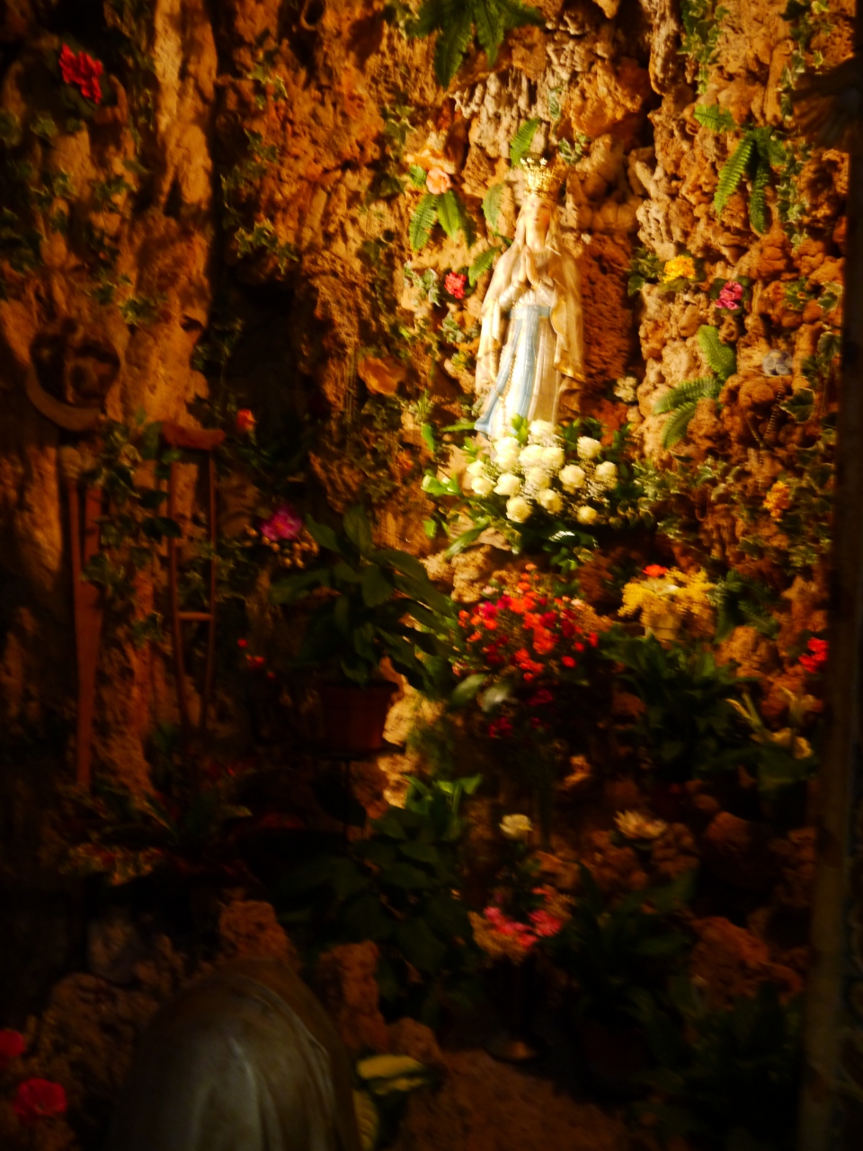 正面向かって右側に花で飾りつけられた洞窟の様な空間もあり、