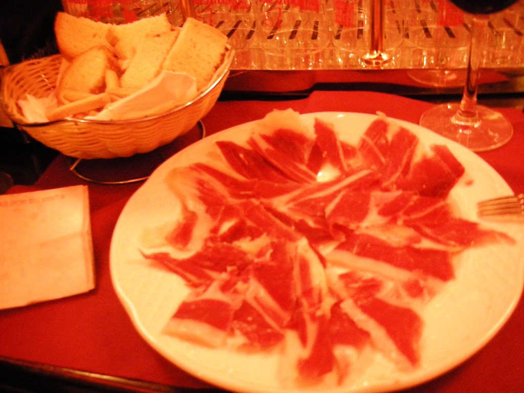 ロンダ闘牛場から北東に少し入ったソコッロ広場にあるカサ・オルテガ、店員さんの対応と笑顔がとても良かったです。ハモン・イベリコ(画像)は一皿で12ユーロ前後でした。(パンとクラッカー付)脂がほどよくとろけて旨かったです。
