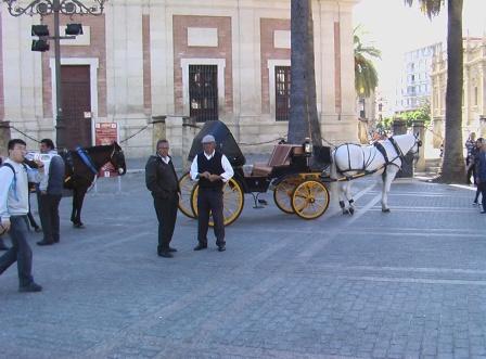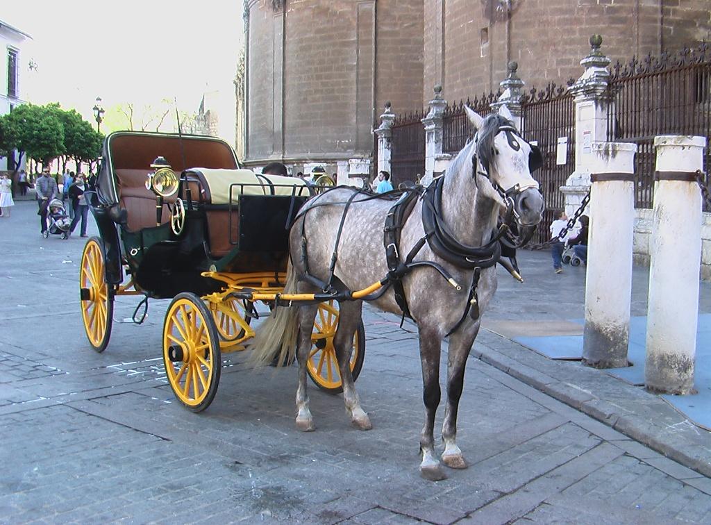 観光馬車、結構色々な観光地に居るのですが、ここは特に多いですね。時間もあまりないので、効率的に要所を観るため初めて乗ってみることにしました。料金は60ユーロ(セマナサンタの観光シーズン)。運転手は「役所との協定で料金は一律で決まってるから!」みたいなこと言っていますが、どうやら本当のようです。