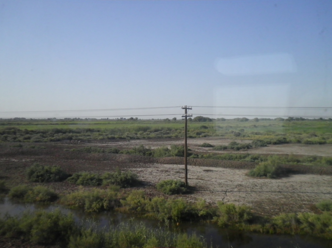 ウズベキスタン・クングラッド⇒カザフスタン・ベイナウ 国際列車の車窓に映るキジルクム砂漠