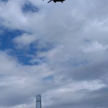 信徳中心ウエストタワー側の出口を進むと海側が遊歩道になっていて、香港ーマカオ間を飛ぶヘリコプターの定期便とビクトリアハーバーが眺められます。フェリー乗り場が右側にあるため、そちらの方角の景色は見れません。