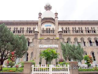 旧クアラルンプール中央駅の目の前にあります。重厚感があり写真で撮ると絵になる建物です。旧クアラルンプール駅との間に道路があり、歩道には電線もあったりで、写真的に良い構図を探すのにちょっと工夫が要ります。
