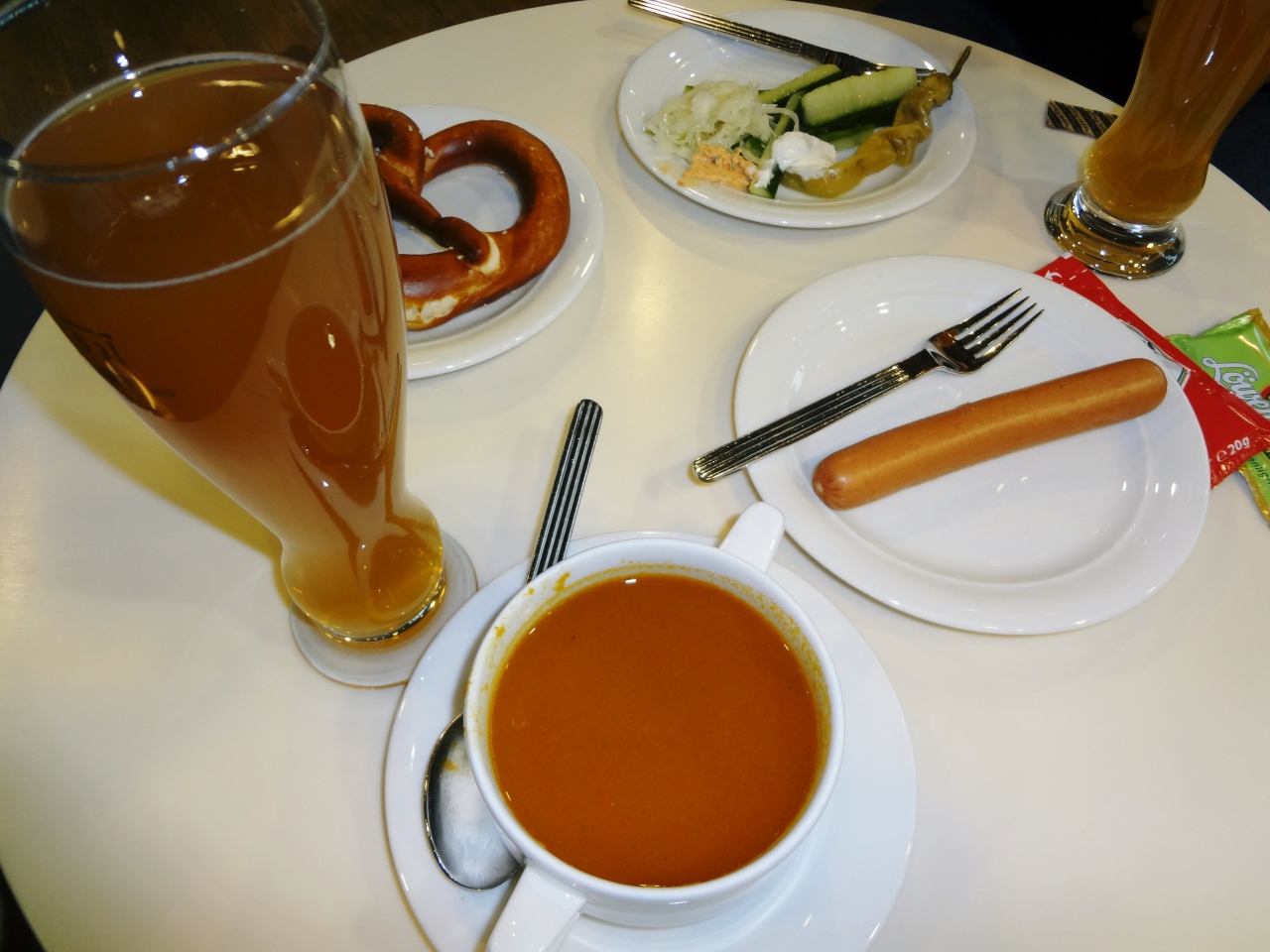 ANA便利用の際にこちらのラウンジを利用しました。恐らくスターアライアンスの場合はこのラウンジを利用となるのでしょう。ドイツらしくソーセージとビールはしっかりとありました。ドイツ最後の夜にこの二大名物を堪能。時間帯にもよるでしょうが、かなり空いていました。