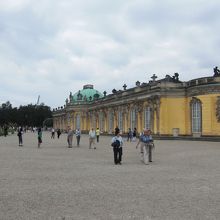 サンスーシSanssouci宮殿、なぜかフランス語で「憂いのない」宮殿。こちらは18世紀半ばに建設。ロココ様式のクリームイエローとミントグリーンの配色がかわいくてすごく好きです。すごく待つって聞いて朝イチで電車にのったおかげか15分くらい並んだだけですみました。帰りはめちゃくちゃチケット売り場が混んでいたので、朝イチがオススメです。