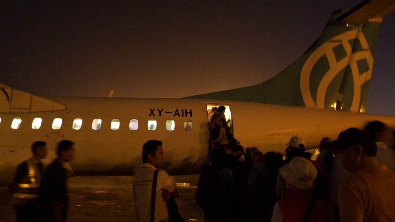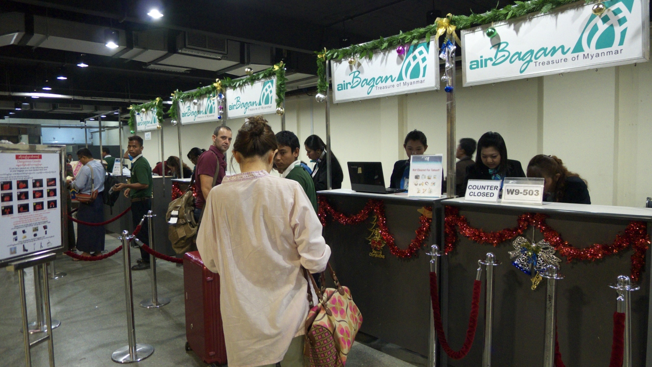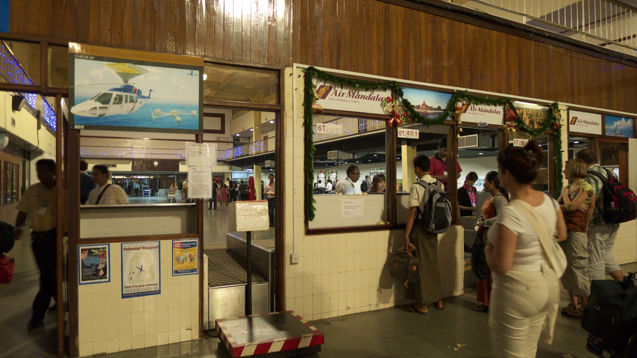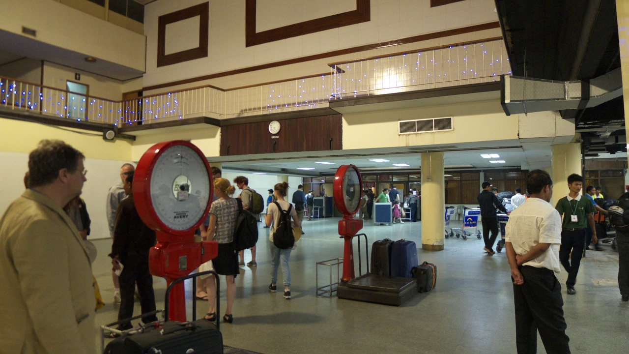 市街からは$6でした。途中新しい高架の道も完成し、30分ほどで到着します。国際ターミナルの建物は新しくとてもキレイです。建物の中に入るとすぐにセキュリティチェックがあり、乗客以外はそこから先に入れないようでした。国内線ターミナルは木が使われていて昔ながらの作り、チケットも手書きだったりとアナログでした。