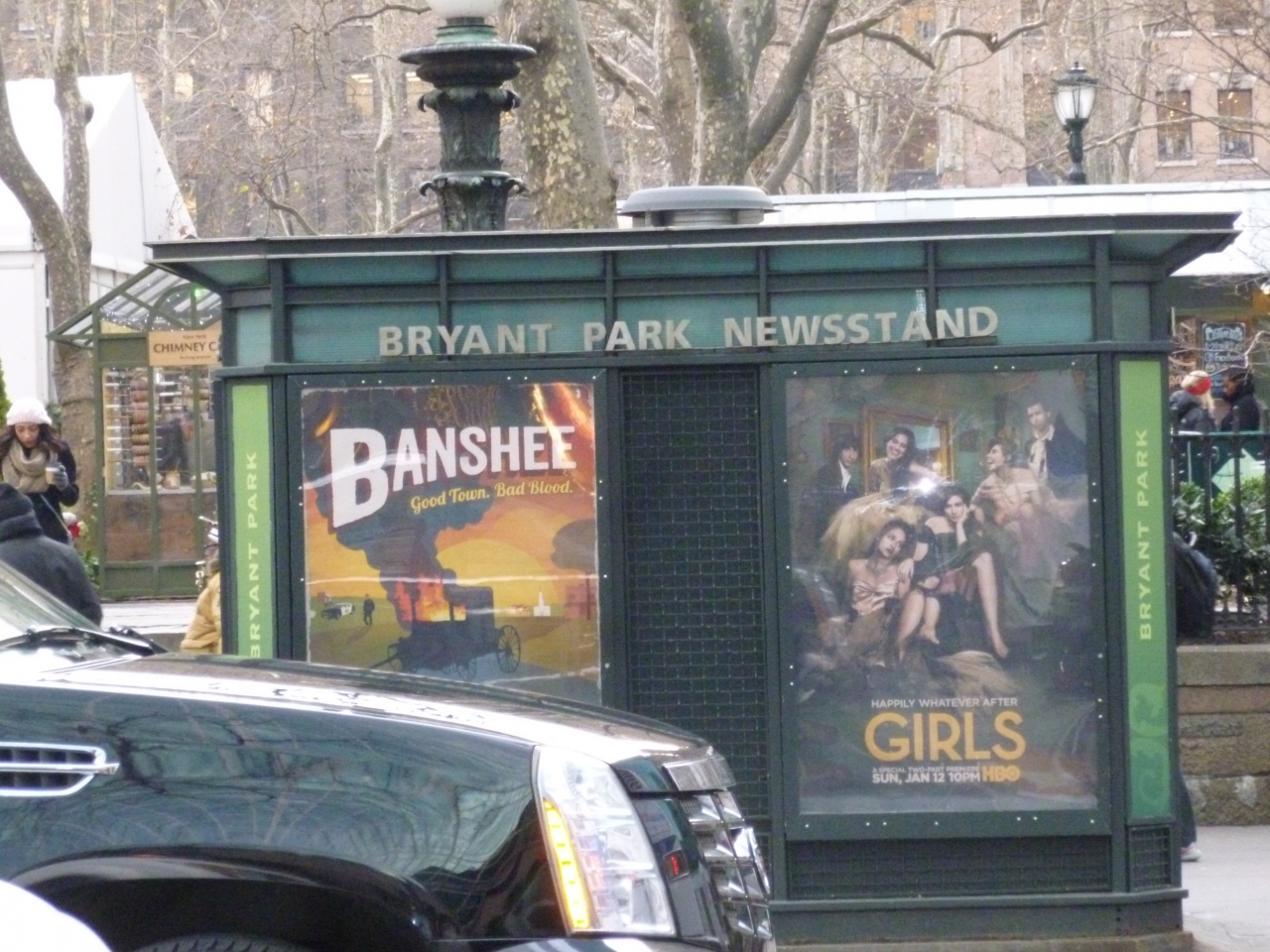クリスマス前の訪米でしたので、公園内にクリスマスツリー用の大、中、小の樅ノ木が所狭しと並べて、売っていました。この時期の多くの公園や、通路にも樅ノ木が並んでいました。この公園は、カファもあり、場所がら、ニューヨーク子の休憩所のようです。