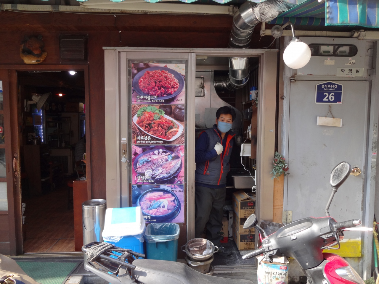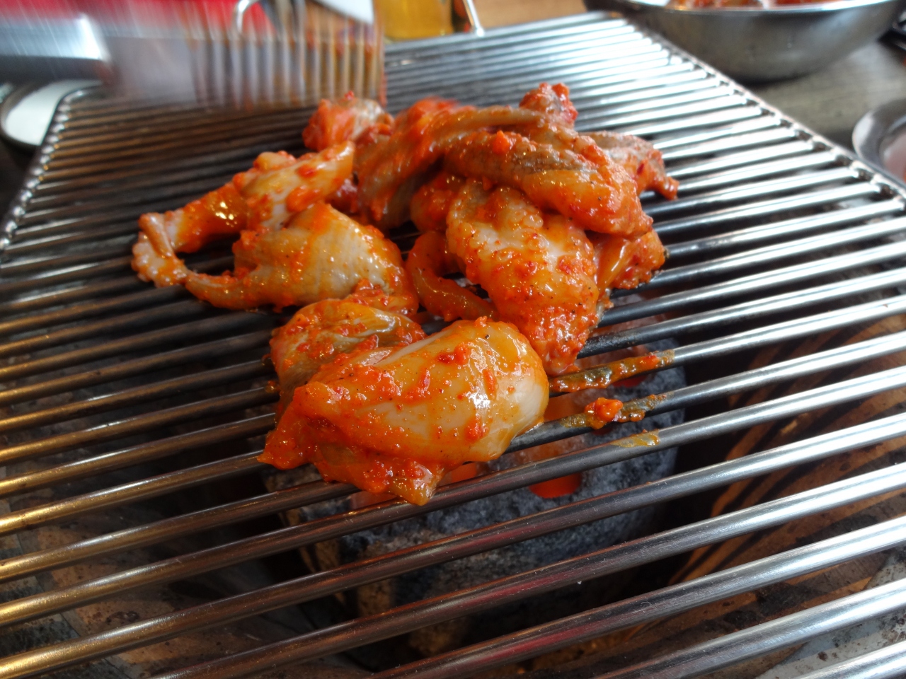 チュクミ(イイダコ)の炭火焼きを食べましたが、鉄鍋で煮込む料理もありました、