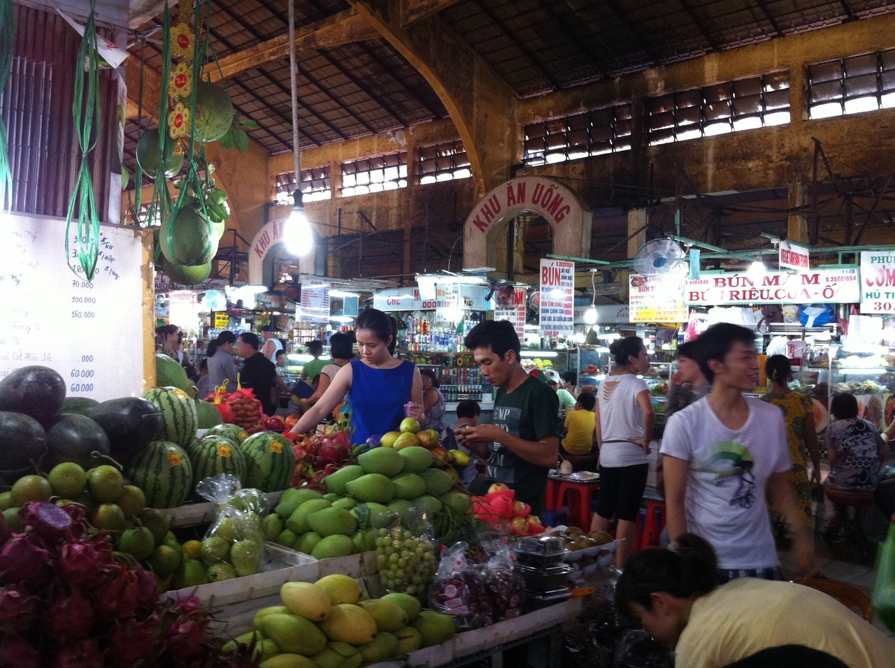 ホーチミンの歴史ある市場です。中にはたくさんのお店があり、通路ごとに売るもののエリアが別れてます。でもこの市場に売っているものは全てホーチミン市内の至る場所で買えるものです。ボッタクリ値段のものを一生懸命値引きして買うより、市内で定価で買う方が安いです。あくまでも雰囲気を楽しむ場所だと思いました。