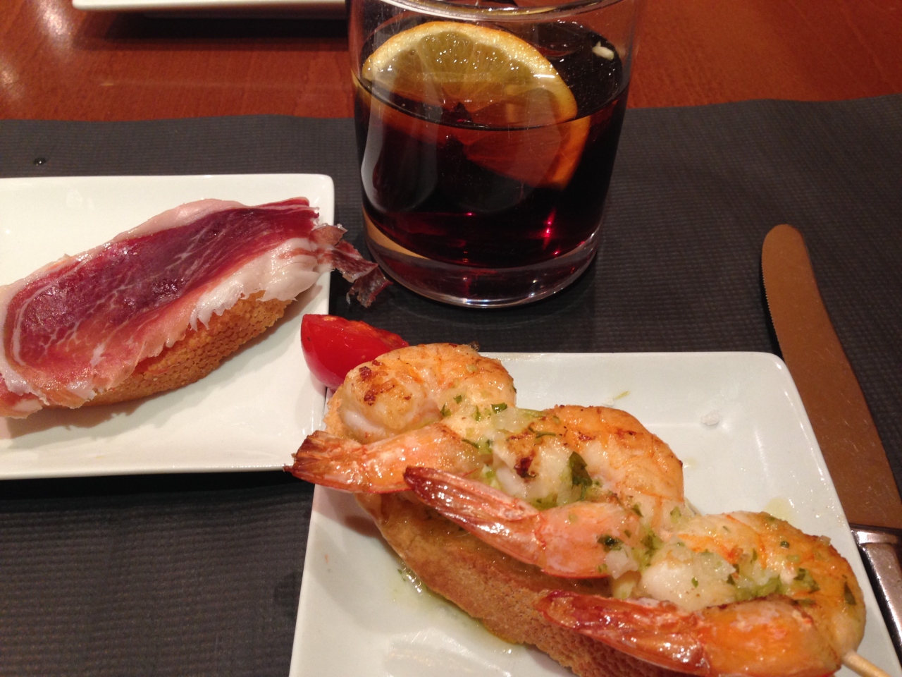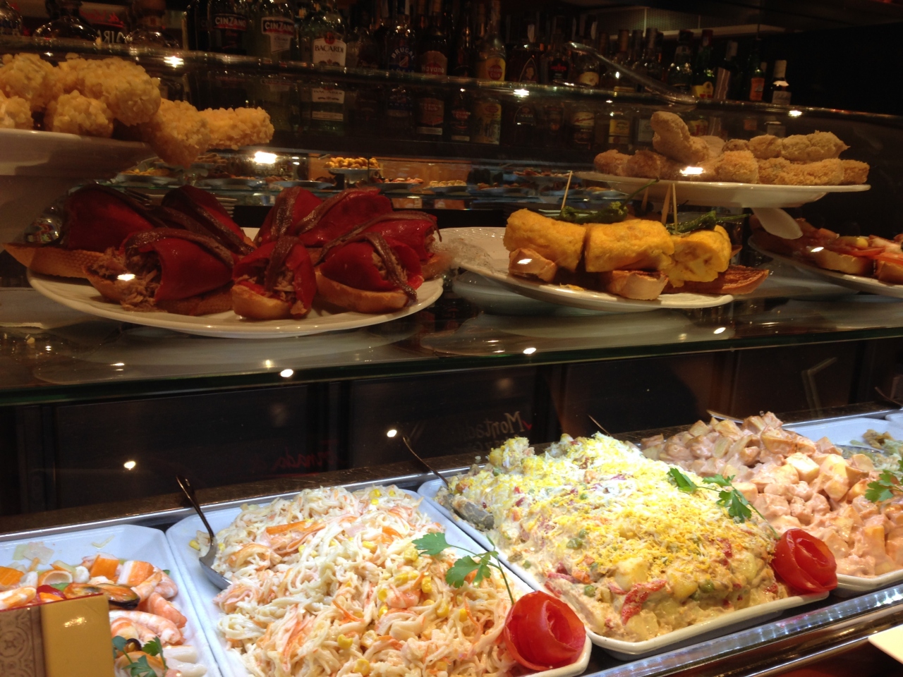 ガイドブックには必ず載っている有名店。間口は広くないものの早い時間から賑わっていてフラッと入ってみるとかなり大箱。スタッフはキビキビ動き活気があります。メニューがあるしカウンターに美味しそうなタパスが並んでいるので相談してオーダーするとよいでしょう。カクテルやワインはグラスで2ユーロ程度、タパスは1.5ユーロ~しっかり食べたいならキチンとした一品料理も充実。使いやすいと思います。