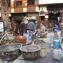 迷路や二人並んでやっと通れるほどの路地を通ってきたせいか、そう広くはない広場でも大広場に出たようで、明るい活気がある場所のように思えました。この広場では、伝統的な手作業で銅製品の鍋などが作られており、びっくりするほど大きい鍋があります。