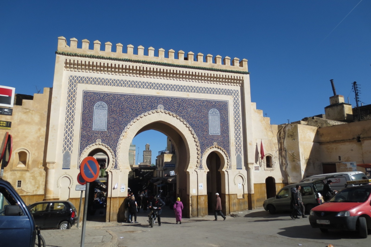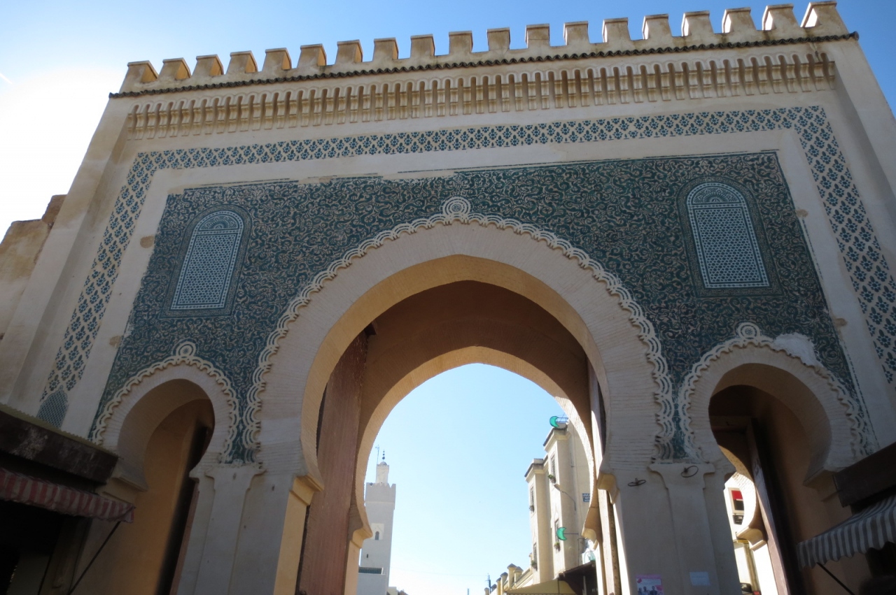 ブー ジュルード門は、メディナの入り口にあるフェズ最大の門です。入るときの門の色はブルーで、中に入って門を振り返って見てください。つまり門の裏側はグリーンです。