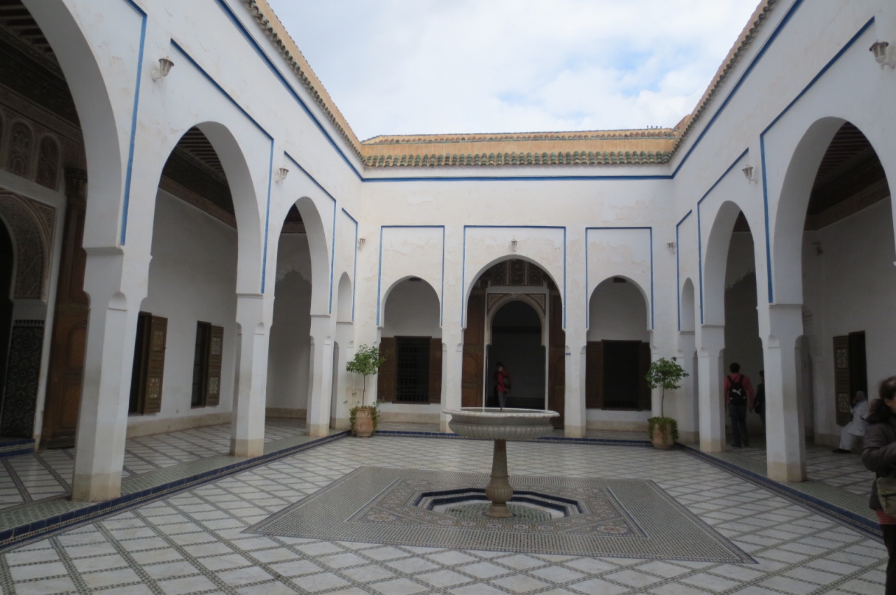 美しいムーア式の庭には、大理石が敷かれ、噴水のある水盤が涼しさを感じさせます。