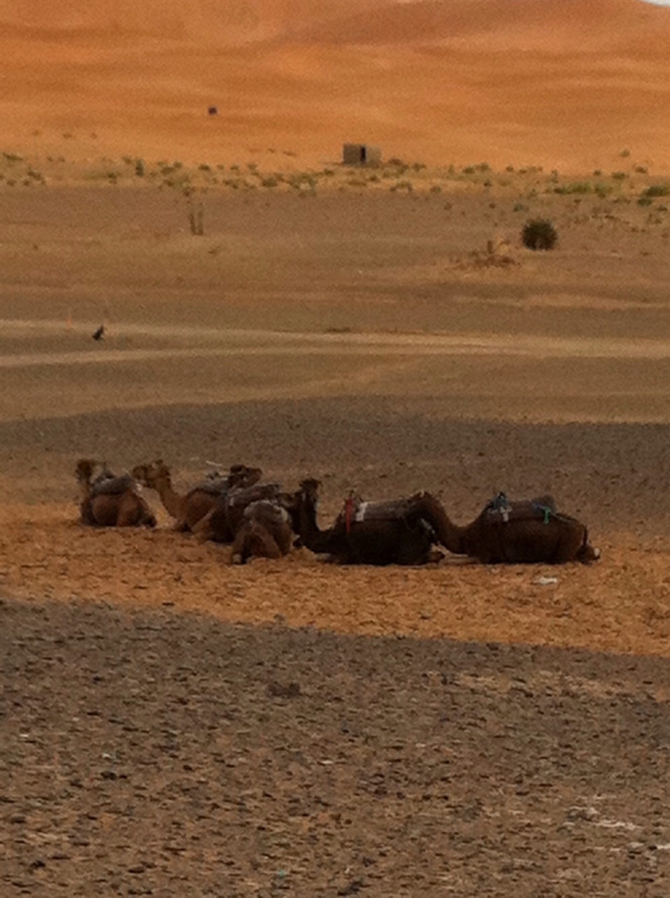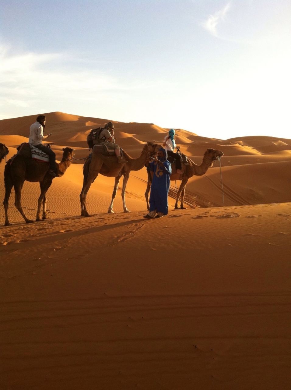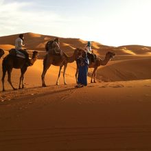 サハラ砂漠で宿泊したくて、モロッコまで行きました。マラケシュ発の現地ツアーに参加し、2泊3日で一泊はアイトベンハッドゥとの間あたりで、もう一泊がサハラ砂漠のテントでした。マラケシュから砂漠エリアまで、バンで移動し、そこからはラクダに乗って移動。夕方前にはテントに着いたので、砂丘にも登ってみました。砂山を歩くのはキツイですが、遠くまで見渡せ爽快です。天気も良く、星空もキレイで、サイコーでした。^_^