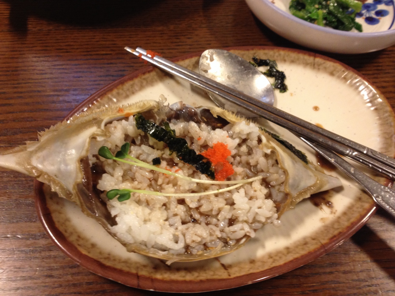 甲羅にご飯を入れていただくのですが、最後にはご飯が足りなくなってしまうほどです。