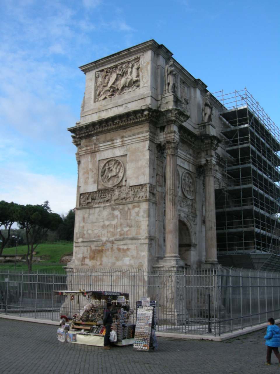 コロッセオからフォロ・ロマーノに移動する途中にあります。ローマにある凱旋門のなかで最大規模の門だそうです。どっしりとした巨大な門ですからなかなか見ごたえがあります。私が見学したときはすぐそばで発掘作業を行っていました。また新しい遺跡が見つかったのでしょう。