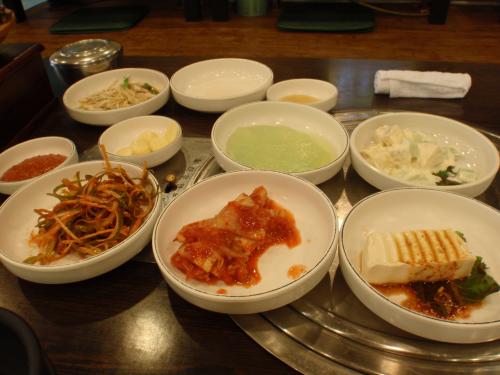 ミョンドンで焼き肉を食べたい時に行きます。無料のおかずが種類もたくさんあってとてもおいしいです。地元の方も結構たくさんいました。焼き肉はおいしかったのですがチヂミはいまひとつでした。最後にヤクルトがサービスされます。また帰るときは誰が好きか聞かれてアイドルの写真をくれます。