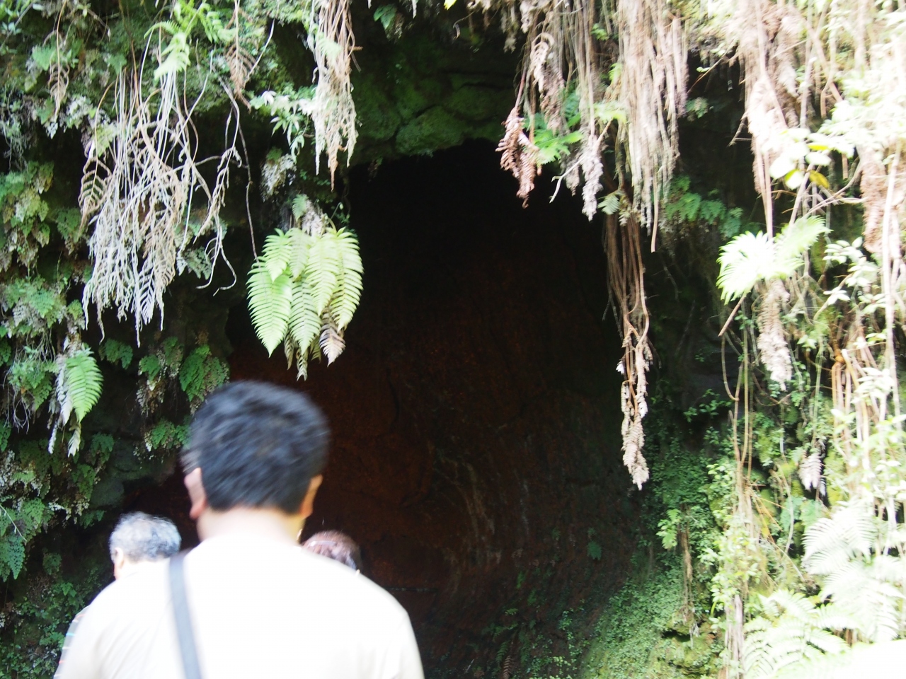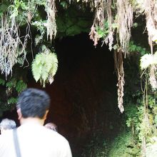 遠い昔に火山が噴火した際に、マグマが流れて、その後に冷えて固まった場所です。洞窟の入り口を入ると、一気に空気がひんやりして寒くなります。マグマが流れたことで枯れてしまった大きな木の根っこ等もありました。