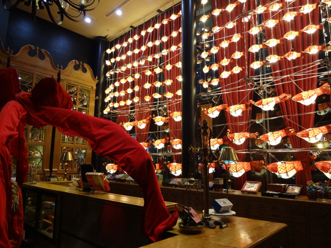私が行ったときは旧正月の飾りがあり、その赤と木の茶色が見事にマッチしていました。